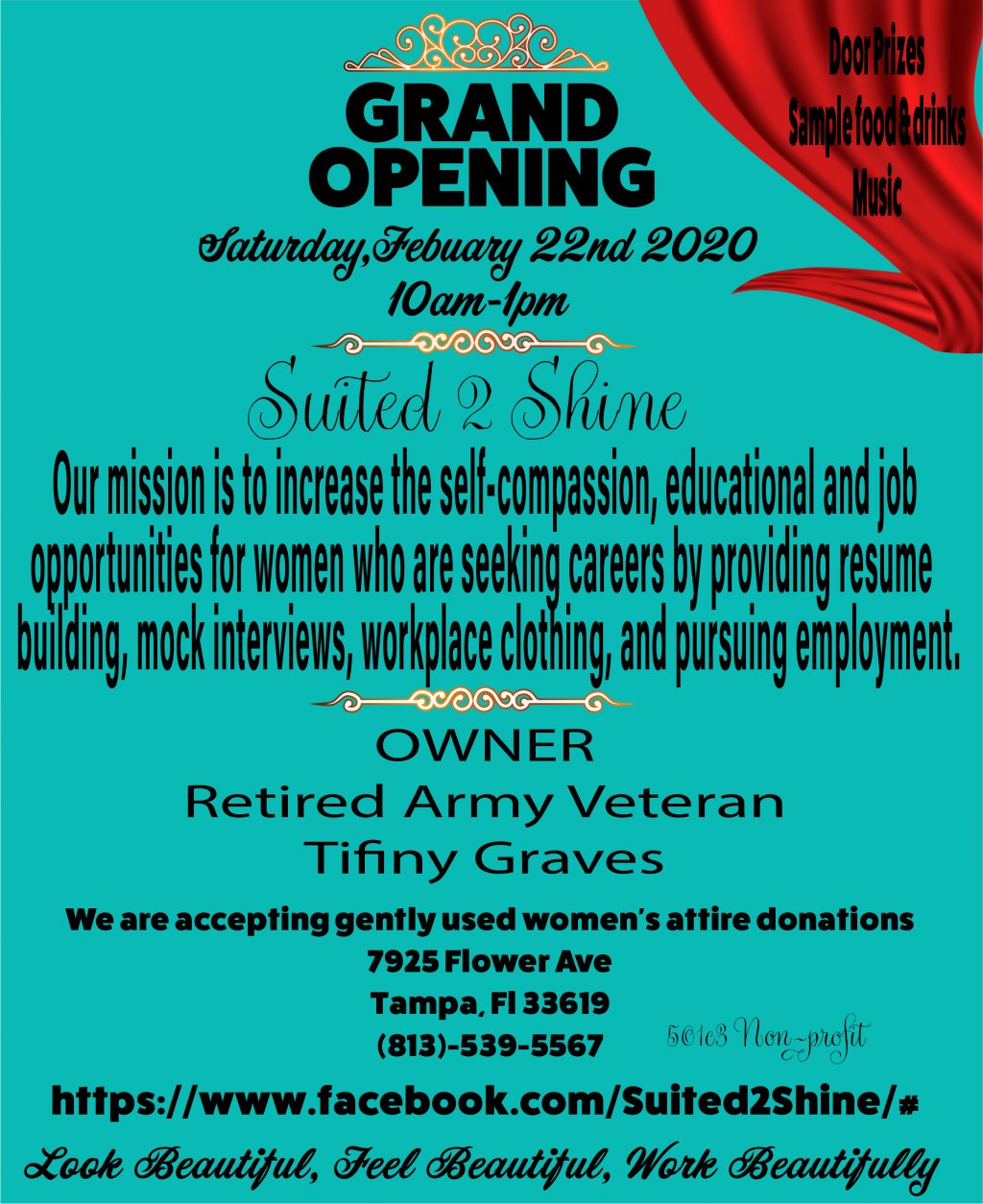 The mission of Suited 2 Shine is to increase the self-compassion, educational (GED) preparation and job opportunities for women who are seeking career by providing resume building, mock interview, professional clothing, and pursuing employment.